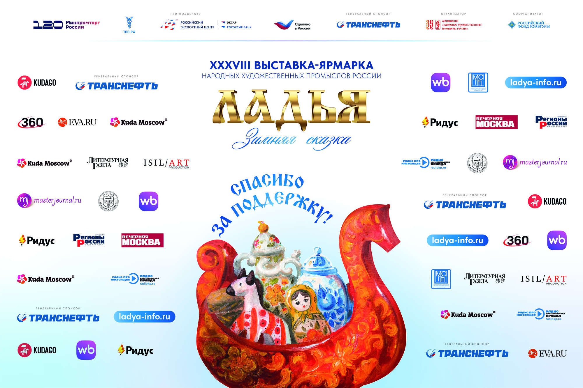 В целях поддержки отечественных производителей, совершенствования художественного уровня и мастерства, повышения квалификации специалистов отрасли, популяризации народного искусства Ассоциацией «Народные художественные промыслы России» с 17 по 21 декабря 2025 года в ВЦ «Тимирязев Центр» проведена выставка-ярмарка народных художественных промыслов России «ЛАДЬЯ. Зимняя сказка-2025», крупнейшая в стране по данной тематике.