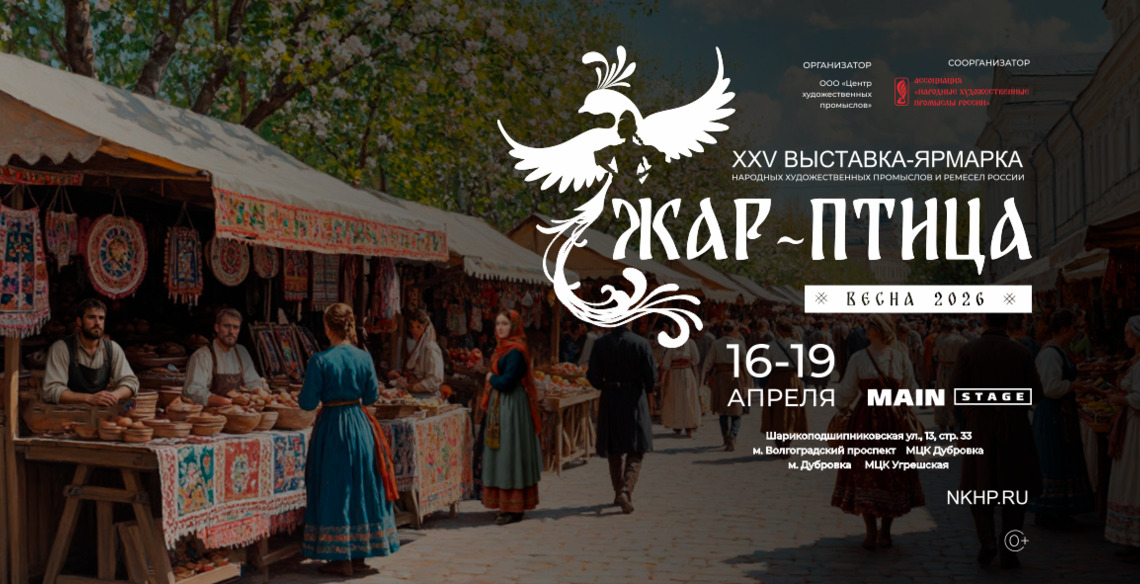 В целях популяризации народного искусства, сохранения культурных традиций, этнокультурного многообразия, культурной самобытности всех народов и этнических общностей с 16 по 19 апреля 2026 года пройдет выставка-ярмарка народных художественных промыслов и ремёсел России «ЖАР-ПТИЦА. ВЕСНА - 2026».