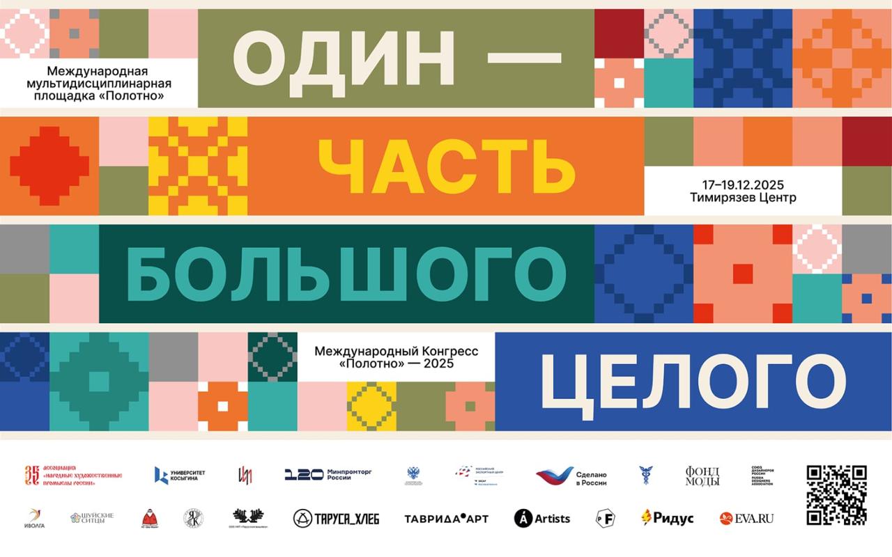 С 17 по 20 декабря 2025 г. в Москве состоится III Международный конгресс народных художественных промыслов «Полотно» — 2025 — ключевая профессиональная площадка России, объединяющая мастеров, дизайнеров, представителей государства, образования, бизнеса и зарубежных партнеров, работающих в сфере сохранения и развития народных художественных промыслов (НХП).