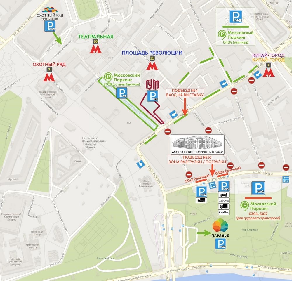 в местах, прилегающих к Гостиному Двору ТОЛЬКО ПЛАТНАЯ https://parking.mos.ru/. Вопросы с парковкой своего автотранспорта экспоненты решают САМОСТОЯТЕЛЬНО.