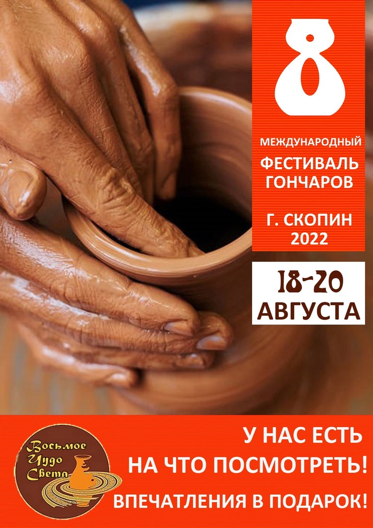 С 18 по 20 августа в городе Скопине Рязанской области, на родине уникального гончарного промысла России, рожденного еще в 1640 году, пройдет VIII Международный фестиваль гончаров.