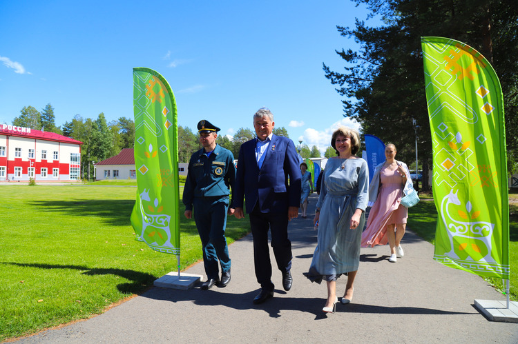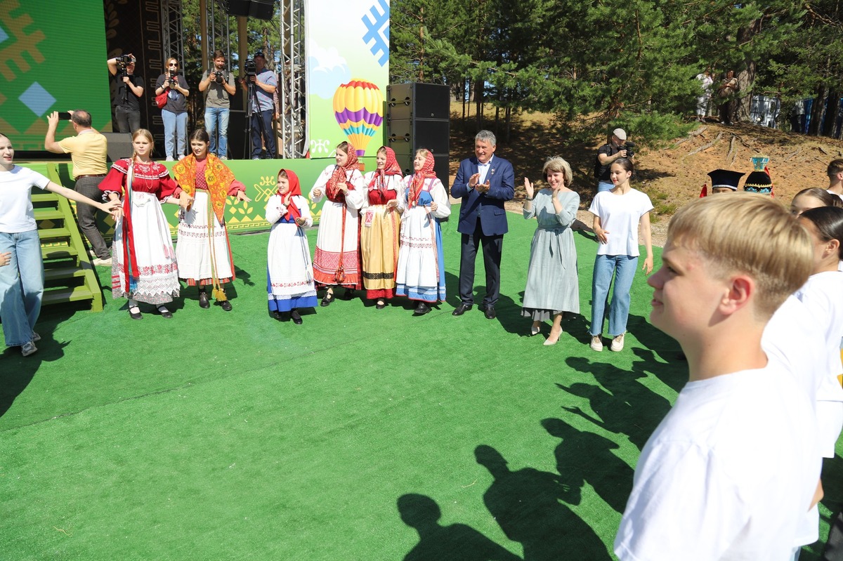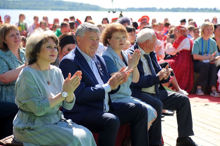 Поздравить участников мероприятия прибыли представители организаторов Фестиваля Заместитель Председателя Совета Федерации Федерального Собрания Российской Федерации, Герой России Юрий Воробьев, Заместитель Губернатора Вологодской области Лариса Каманина и директор Всероссийского центра развития художественного творчества и гуманитарных технологий Оксана Гончарова.