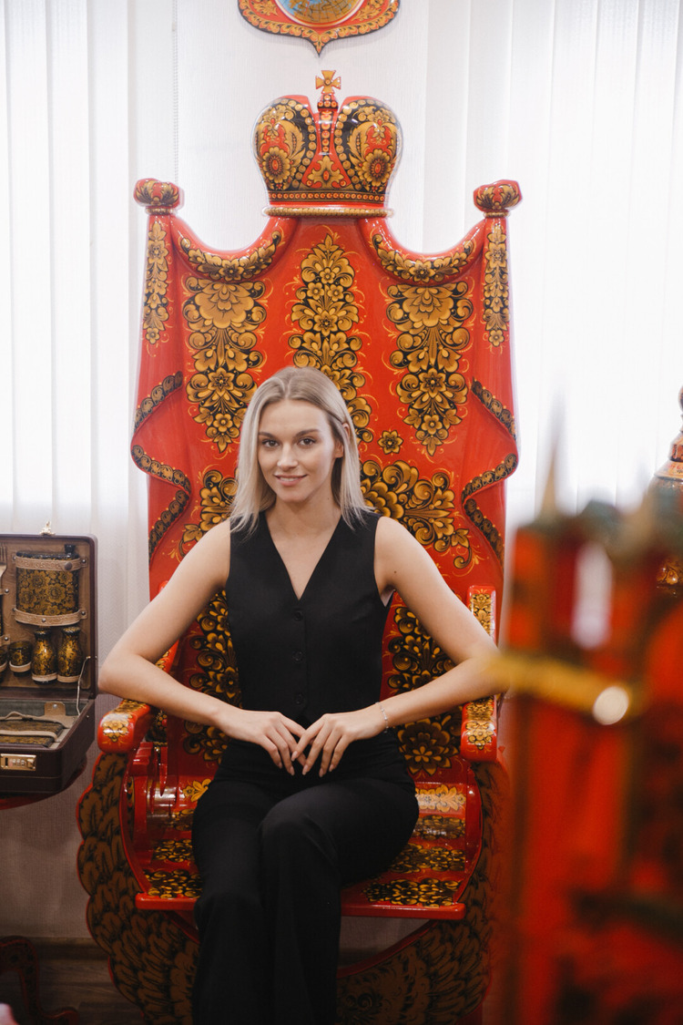 Я познакомилась с мастерицами АО «Хохломская роспись». И, мне кажется, они настоящие феи — создают волшебные узоры. Надеюсь, украшенная их росписью хоккейная клюшка покорит все сердца, и я вернусь с победой.