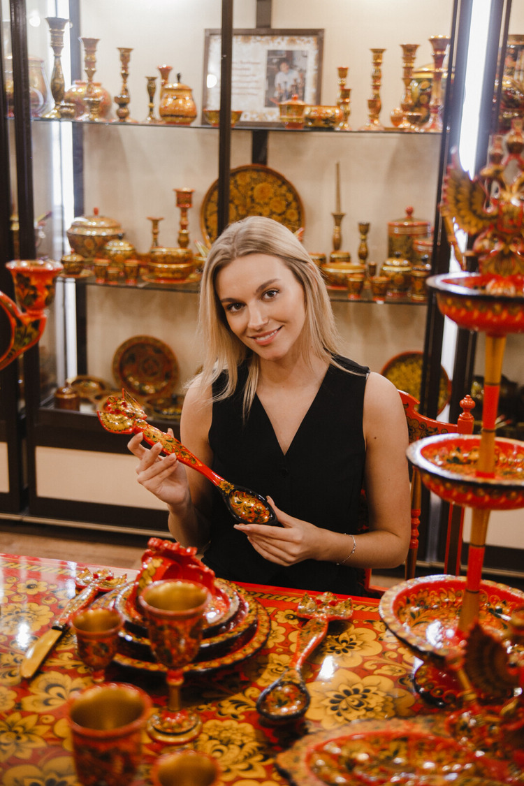 Один из самых крупных российских производителей товаров художественных промыслов АО «Хохломская роспись» разрабатывает и реализует как всемирно известные традиционные изделия, так и дизайнерские линейки с элементами знаменитой хохломской росписи. Например, недавно мастера предприятия украсили хохломой настоящую хоккейную клюшку. В декабре она отправится во Вьетнам вместе с «Мисс Нижний Новгород» и «Красой России» Дарьей Луконькиной на конкурс «Мисс Земля» представлять народные художественные промыслы Нижегородской области и всей страны на мировой арене.