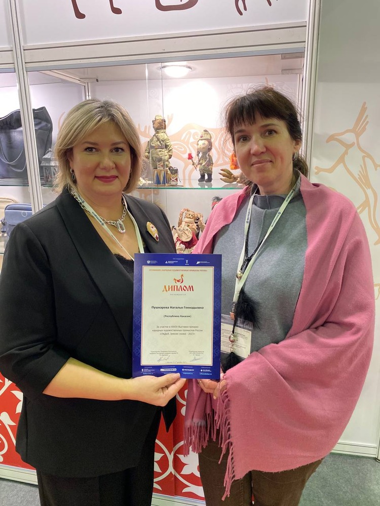 Благодаря поддержке центра «Мой бизнес» 15самозанятых и предпринимателей республики приняли участие в выставке-ярмарке народных художественных промыслов России «Ладья. Зимняя сказка - 2023». По итогам ее работы Хакасия заняла второе место в номинации «За лучшее художественное оформление региональной экспозиции».