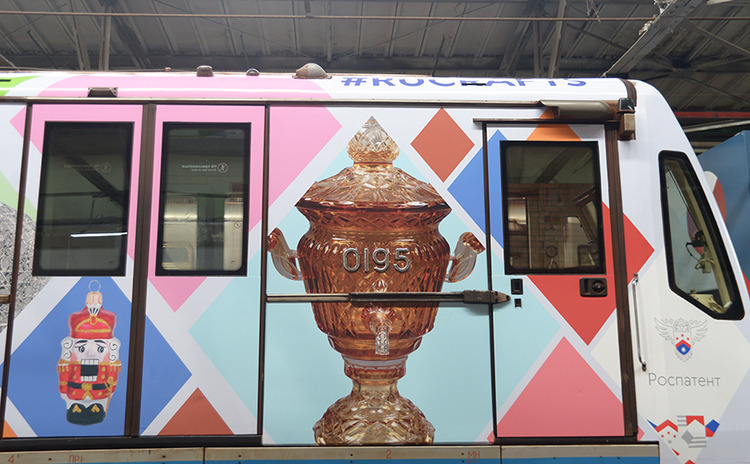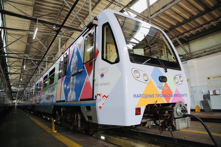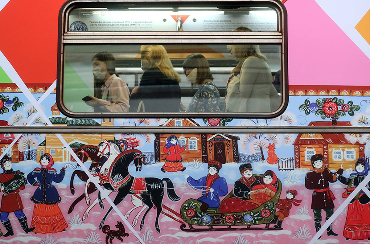 На фото – тематический поезд, посвященный народным художественным промыслам России, который курсировал на Арбатско-Покровской линии в 2020 году.