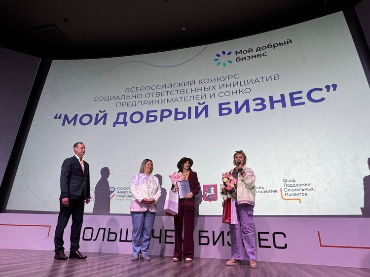 27 июня 2025 г. Председатель Правления Ассоциации «Народные художественные промыслы России» Александр Дрожжин и заместитель директора ФБУ «Федеральный ресурсный центр», Советник заместителя Министра экономического развития Российской Федерации Ольга Терно вручили награды победителю и лауреатам специальной номинации «Промыслы России» Всероссийского конкурса проектов в области социального предпринимательства и социально ориентированных некоммерческих организаций «МОЙ ДОБРЫЙ БИЗНЕС»: