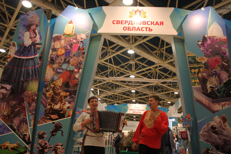 Свердловская область участвует в выставке с собственным стендом, соответствующим уральской промысловой и бажовской тематике «Пещера хозяйки медной горы». Стенд построен при поддержке Министерства инвестиций и развития Свердловской области.
