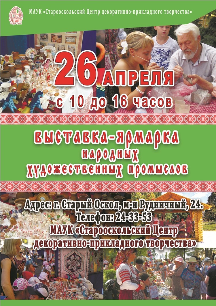 Адрес: г. Старый Оскол, м-н Рудничный, 24. МАУК "Старооскольский Центр декоративно-прикладного творчества"