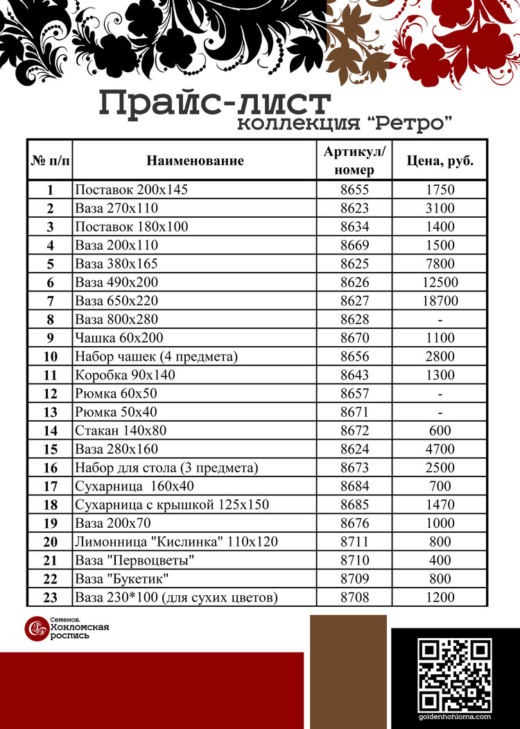 АО "Хохломская роспись представляет каталог интерьерных изделий