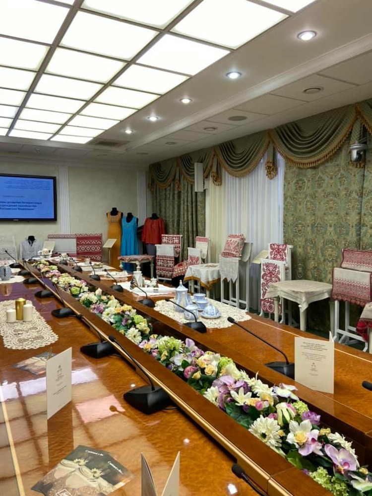Ассоциация «Народные художественные промыслы России» представила на этом слушании экспозицию изделий предприятий народных художественных промыслов, основной специализацией которых является производство льна. Так, в нашей экспозиции были представлены: