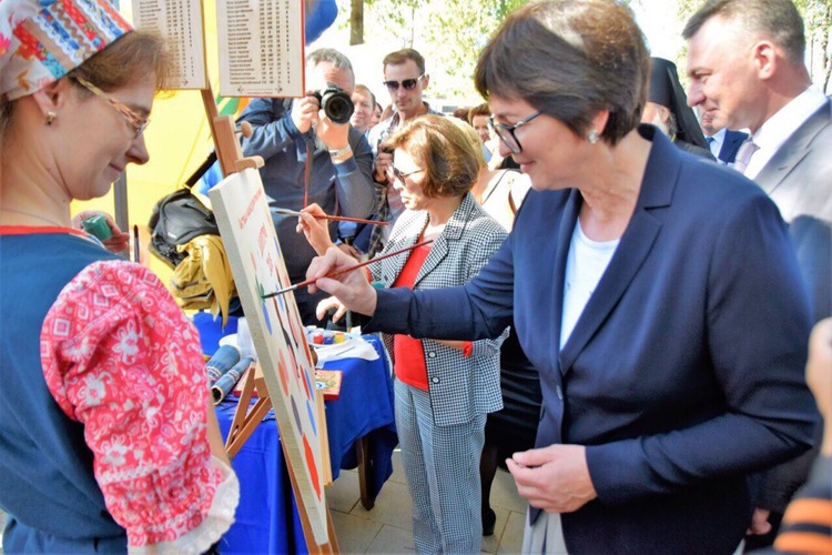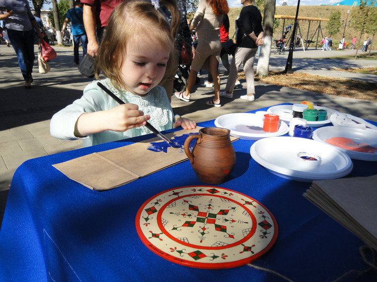 В интерактивной зоне ежедневно проходили увлекательные творческие мероприятия -совместная роспись гостями фестиваля праздничного панно в традициях городецкой росписи, которое стала в этом году символом фестиваля.