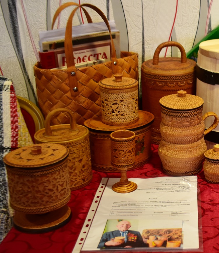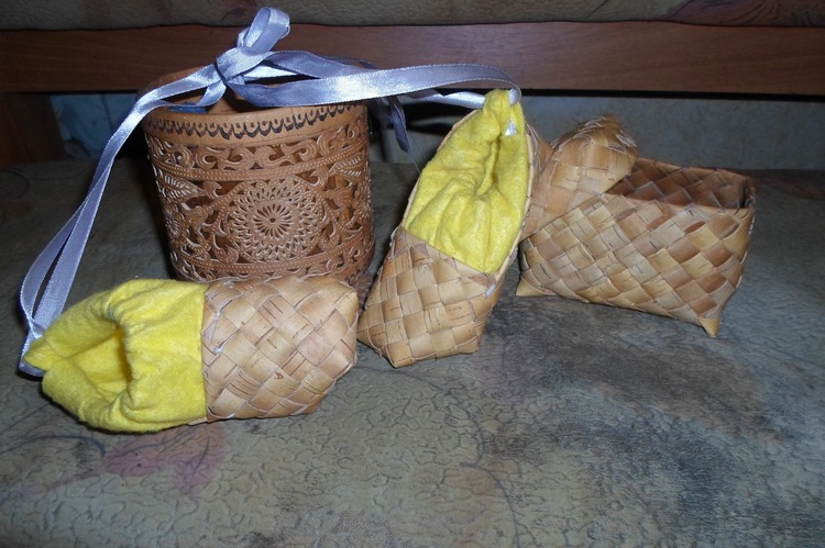«Береста – уникальный материал, - рассказывает мастер. – Она сохраняет температуру и не пропускает влагу. В берестяных туесах молоко не скисает и в жаркий день, а родниковая вода остается холодной. Мои прадеды хранили продукты в доме – грибы, мед, крупу, муку, кедровые орехи, соленую рыбу, мясо - только в берестяных коробах, соль – в берестяных солонках. В берестяных туесках хлеб сохранялся значительно дольше обычного и долго не плесневел. С берестяными корзинами и кошелями бабы ходили по ягоды и грибы, а уж лапти для всей семьи умел плести если не каждый, то почти каждый деревенский житель, мужики в лаптях пахали землю и косили сено. Берестяным мячом у нас в деревне играли дети.