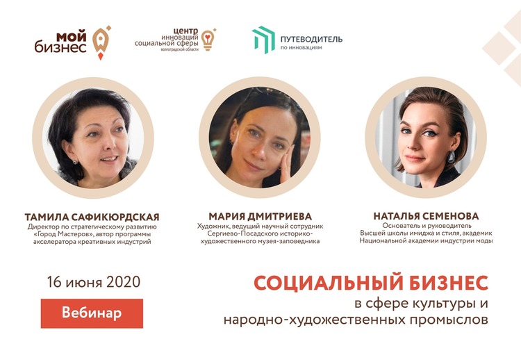 16 июня 2020 года Центр инноваций социальной сферы Волгоградской области проводит бесплатный вебинар “Социальный бизнес в сфере культуры и народно-художественных промыслов”.