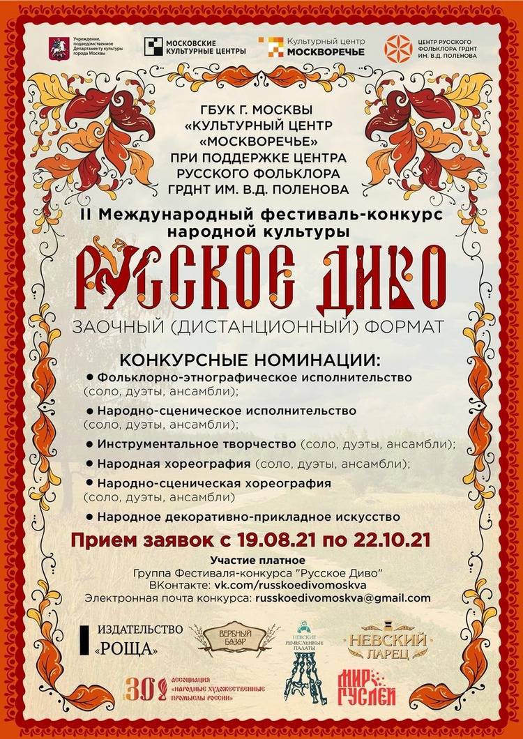 Подробности - в группе Фестиваля-конкурса "Русское Диво" ВКонтакте: https://vk.com/russkoedivomoskva